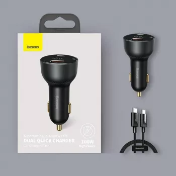 100W Dual-Port Fast Car Charger with PD & QC Technology for iPhone, Samsung, Xiaomi