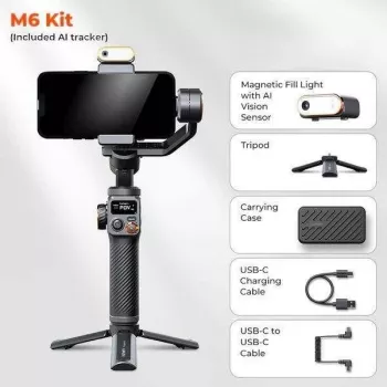 3-Axis Smartphone Gimbal with AI Tracker & Fill Light: Ultimate Stabilizer for iPhone 15 Pro Max & Android