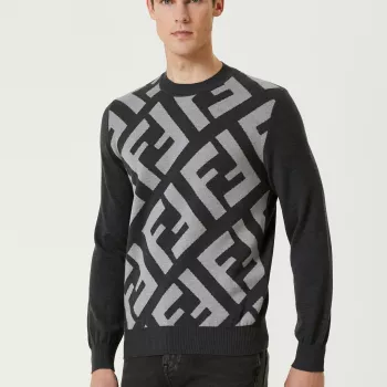 Fendi FF Logo Grey Wool Sweater – 100% Wool Luxury